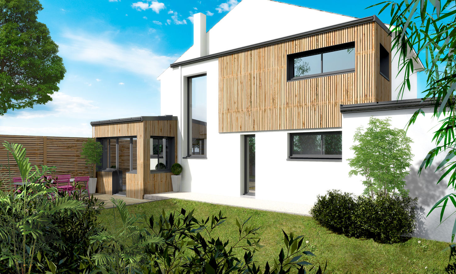 Mon intervention s'est donc portée sur la réalisation d'un projet intégrant les souhaits de M.&Mme B., en faisant pénétrer plus amplement la lumière naturelle au sein de leur habitation, en structurant les espaces et en créant une salle de bains à l'étage. Au-delà de l'aspect fonctionnel, l'objectif a été d'apporter une vraie unité architecturale à l'ensemble, conférant ainsi caractère et chaleur à la nouvelle façade donnant sur le jardin.